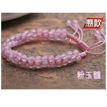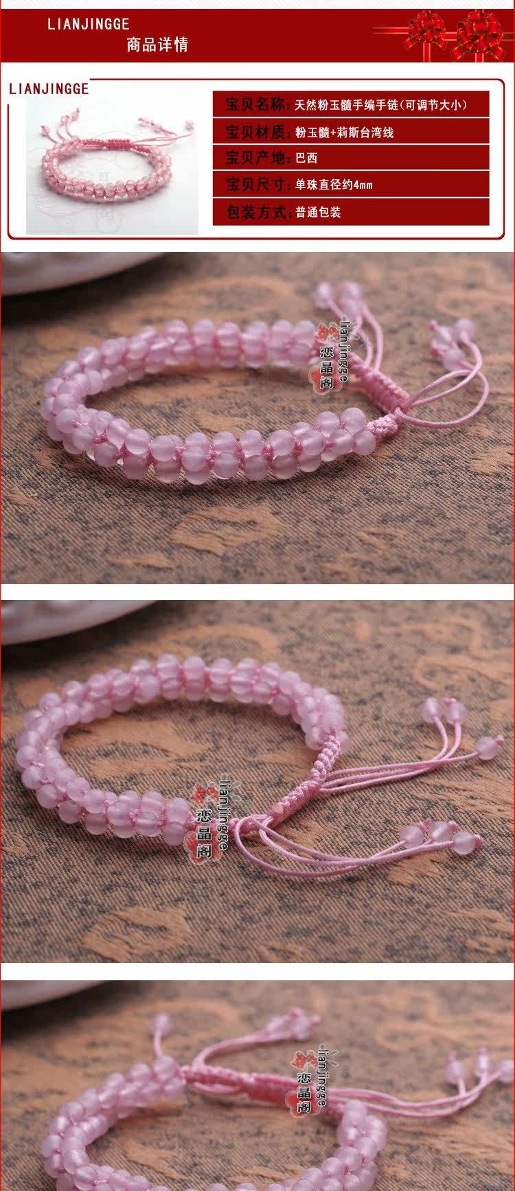 天然水晶粉玉髓手链手工编织三生绳粉色女款少女心手串