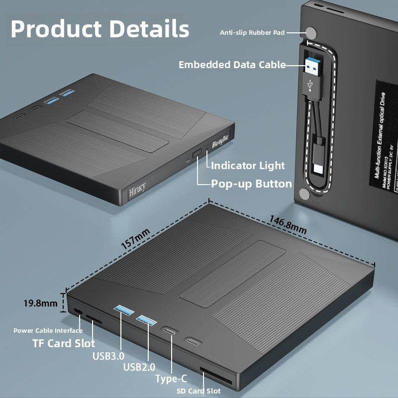 蓝光外置光驱USB3.0DVD刻录机多功能移动光驱3D播放支持100G光盘