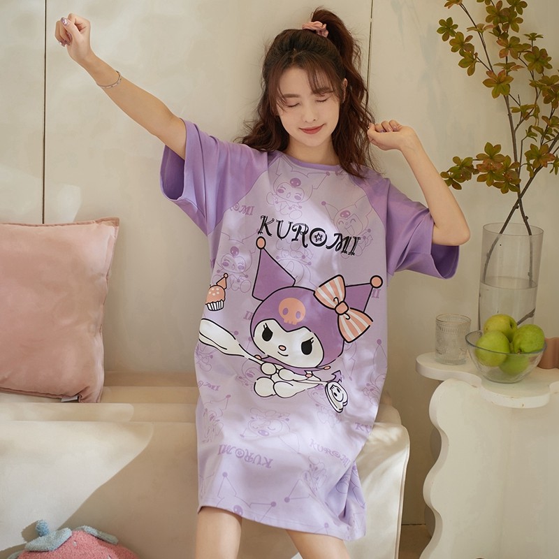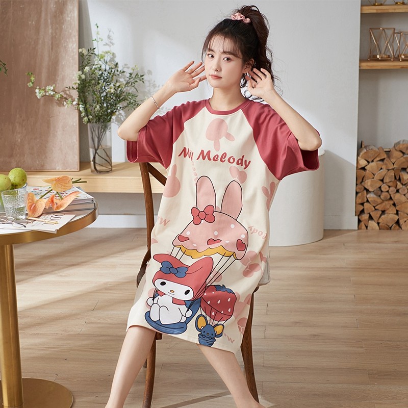夏季米奇睡裙少女睡衣甜美可爱纯棉短袖卡通孕妇加长连衣裙家居服