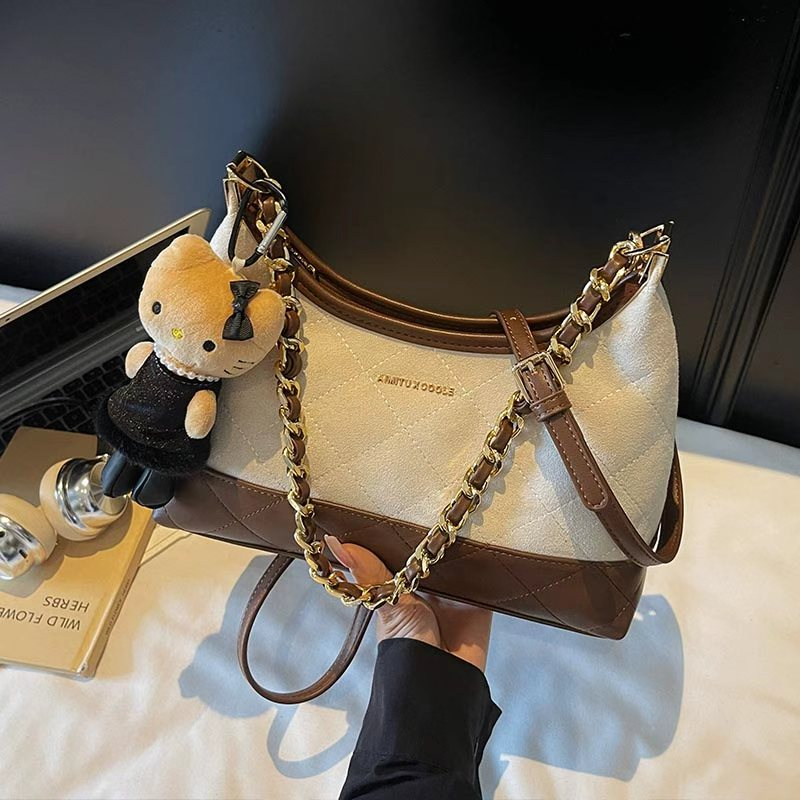 艾米兔女包2025新款通勤百搭洋气质感撞色设计潮流链条单肩斜挎包