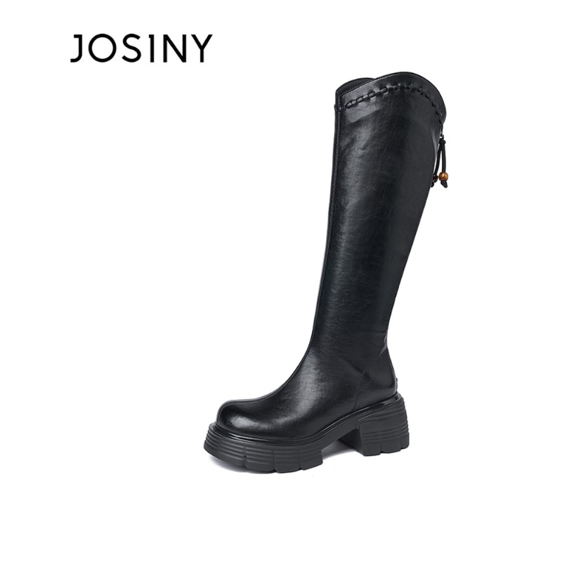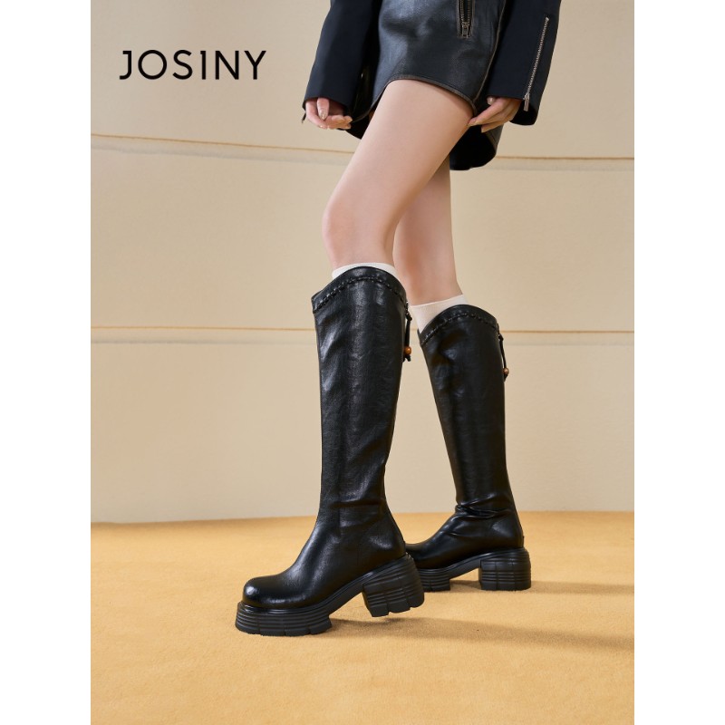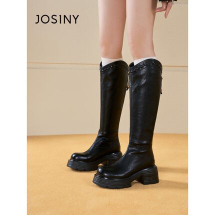 卓诗尼2025秋冬新款粗跟长筒靴时尚舒适优雅女靴潮流后拉链时装靴
