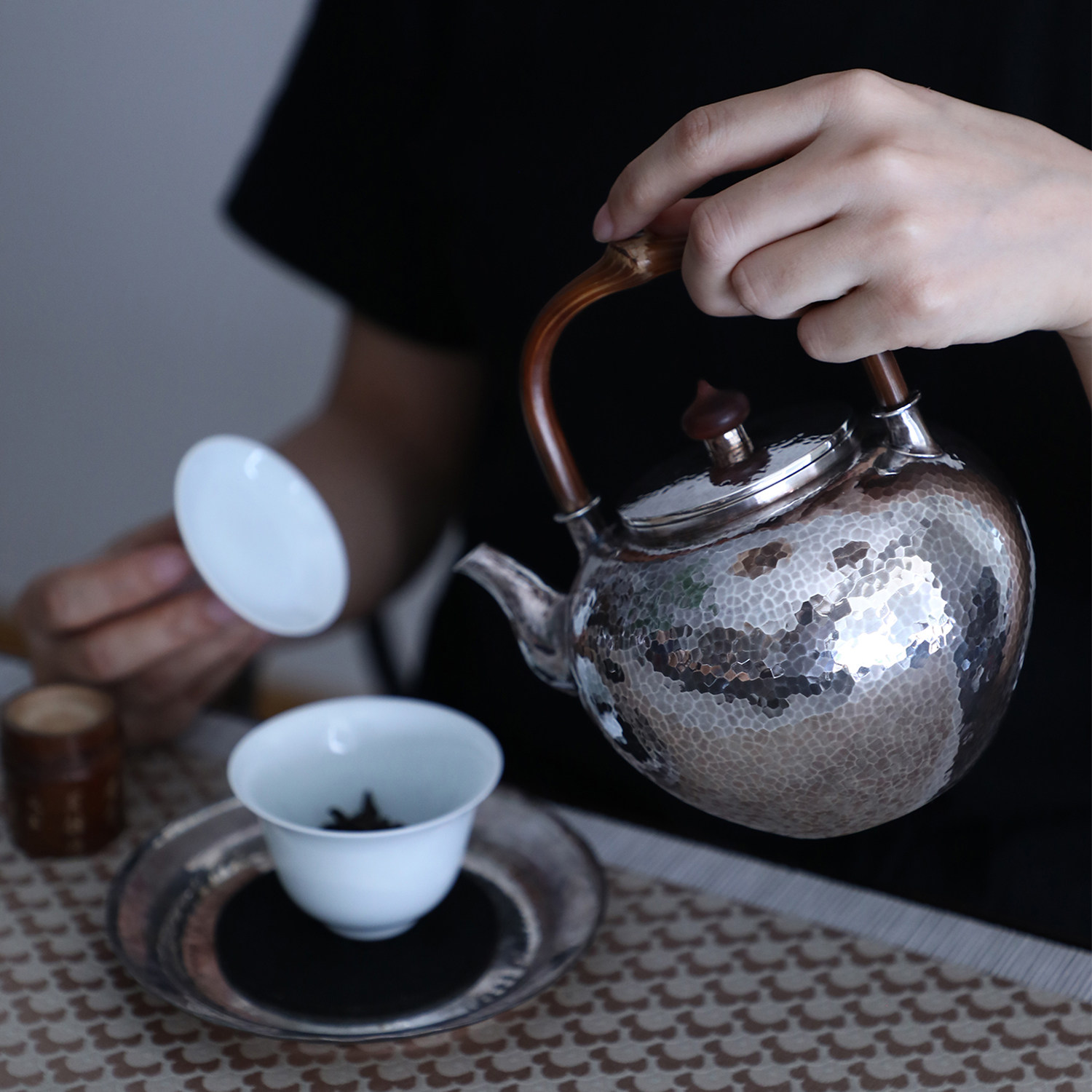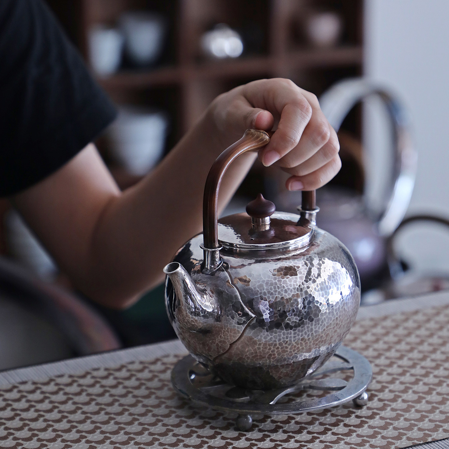纯银时代吴经提梁烧水壶纯银999纯手工中式复古防烫精工茶壶700ml