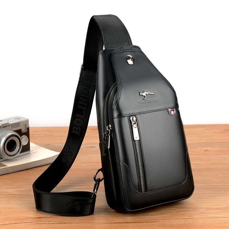 柏林袋鼠胸包头层牛皮男士单肩包斜挎包多功能商务休闲斜挎简约包