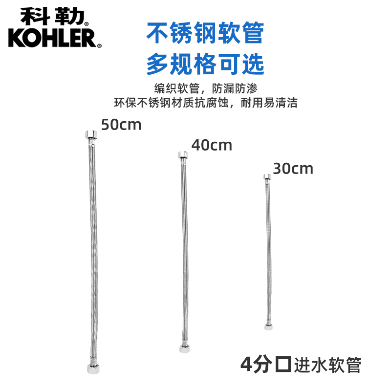科勒进水软管30cm/40cm/50cm马桶面盆龙头厨房进水管4分接口配件