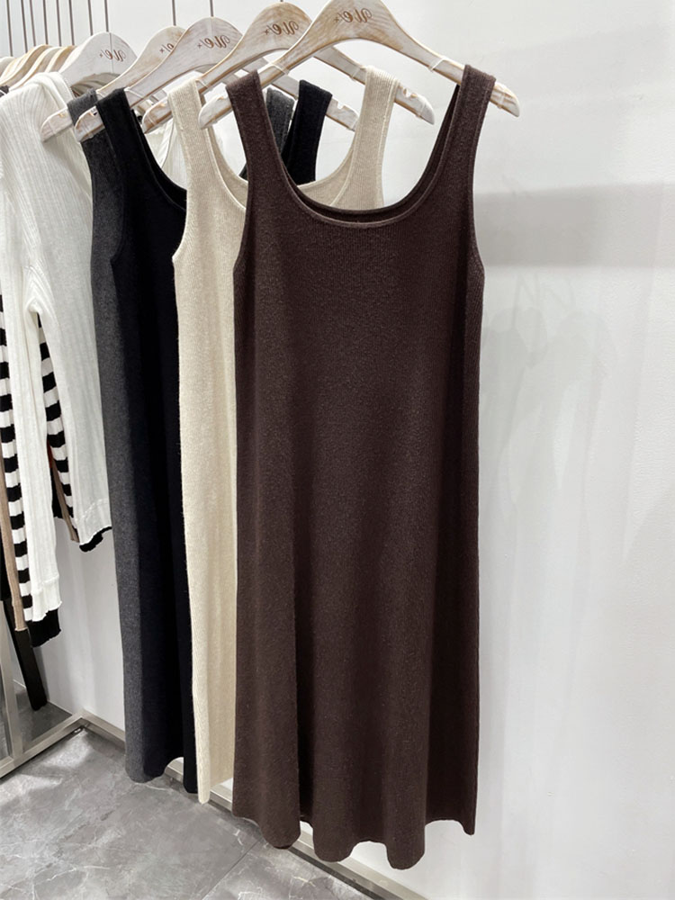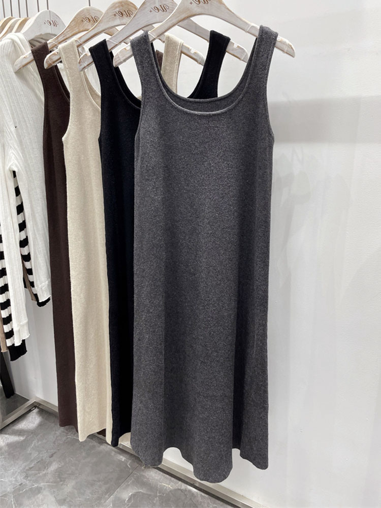 高级感u领背心长裙针织纯色