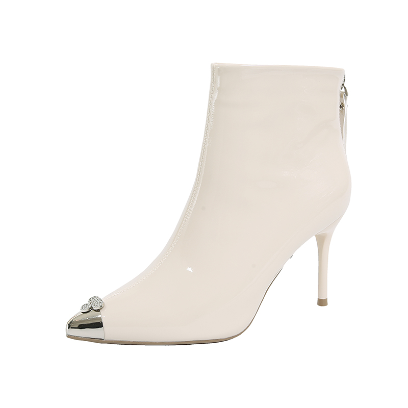 小尖头时装靴女秋冬季女靴2024新款高跟靴女细跟英伦显瘦白色短靴