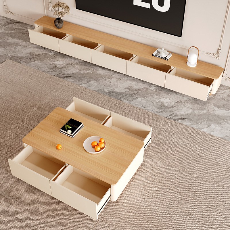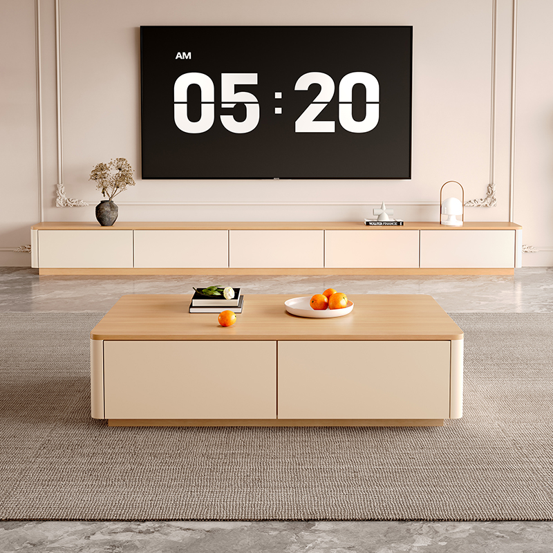 原木落地电视柜奶油风茶几组合现代简约电视机柜客厅地台2025新款