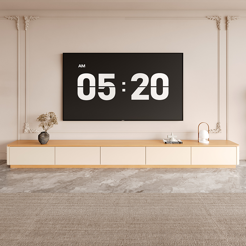 落地电视柜原木奶油风