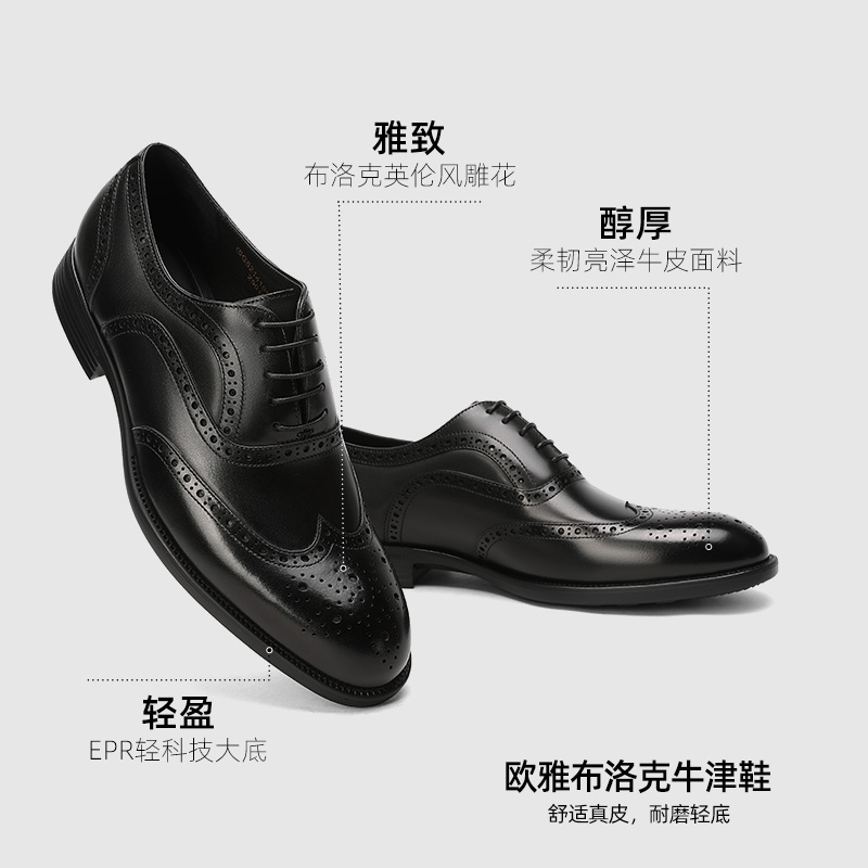 金利来皮鞋 秋季新款真皮商务正装布洛克雕花鞋男士透气宴会鞋男