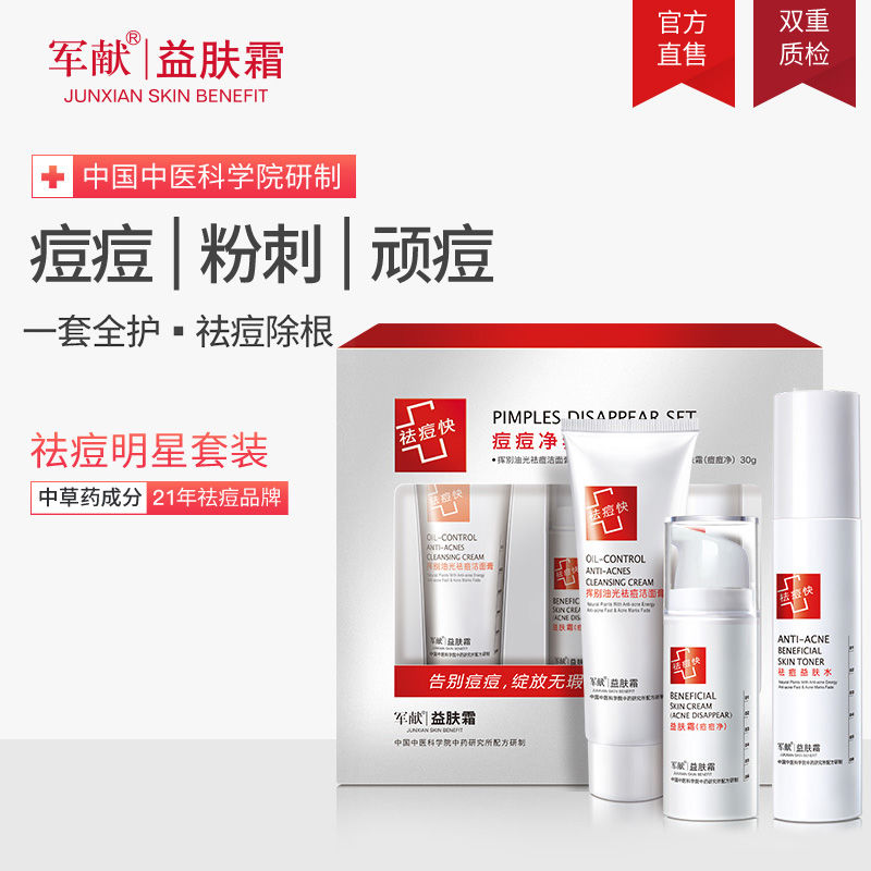 军献益肤霜祛痘套装祛粉刺淡化痘印祛痘膏青春痘护肤品女男正品