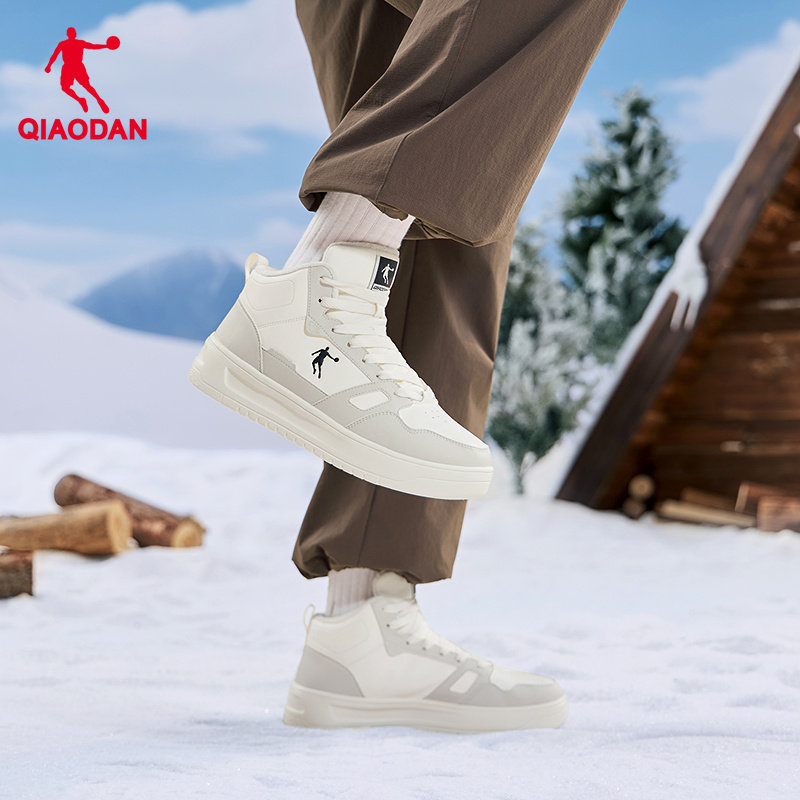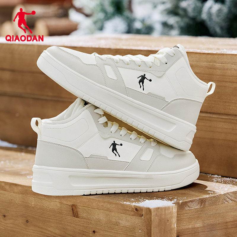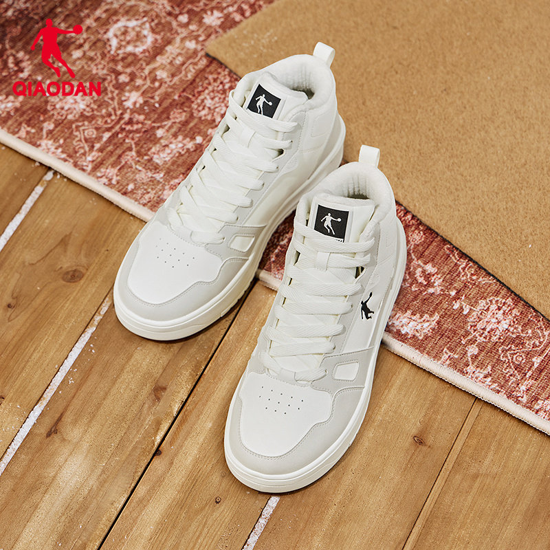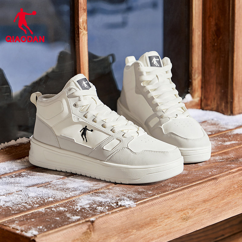 乔丹官方皮面运动鞋男冬季新款休闲保暖加绒棉鞋黑白板鞋高帮学生