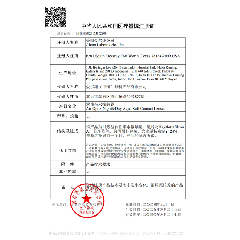 爱尔康视康水润日夜型月抛3片装隐形近视眼镜硅水凝胶官方正品