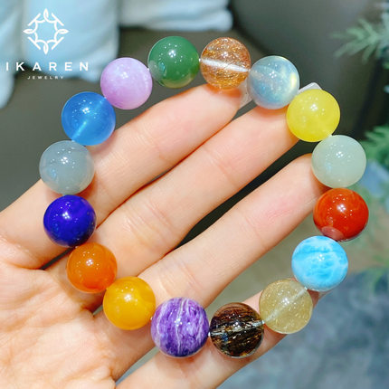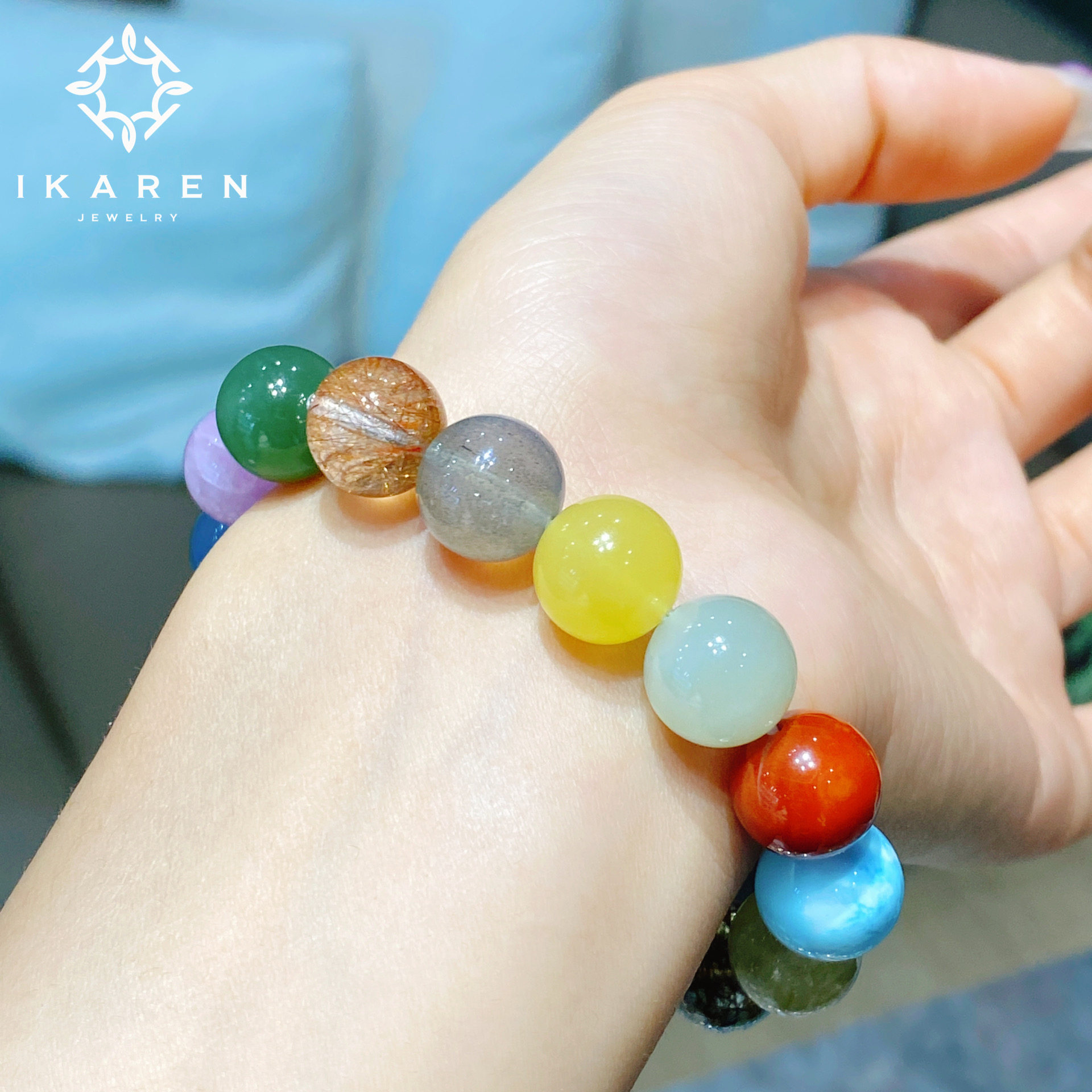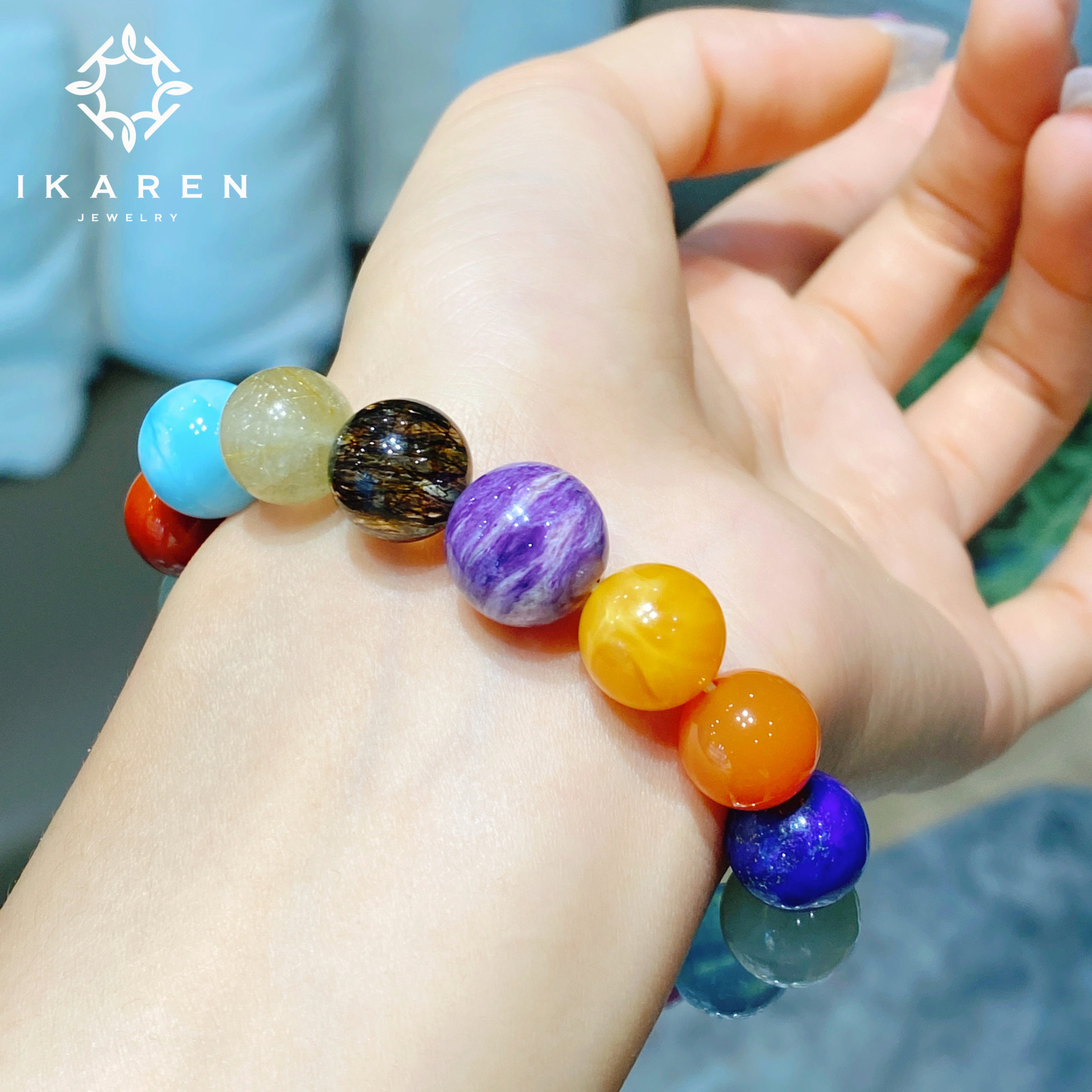 【IKAREN】天然多宝手串彩色宝石珠串手链蜜蜡海蓝宝碧玉青金石