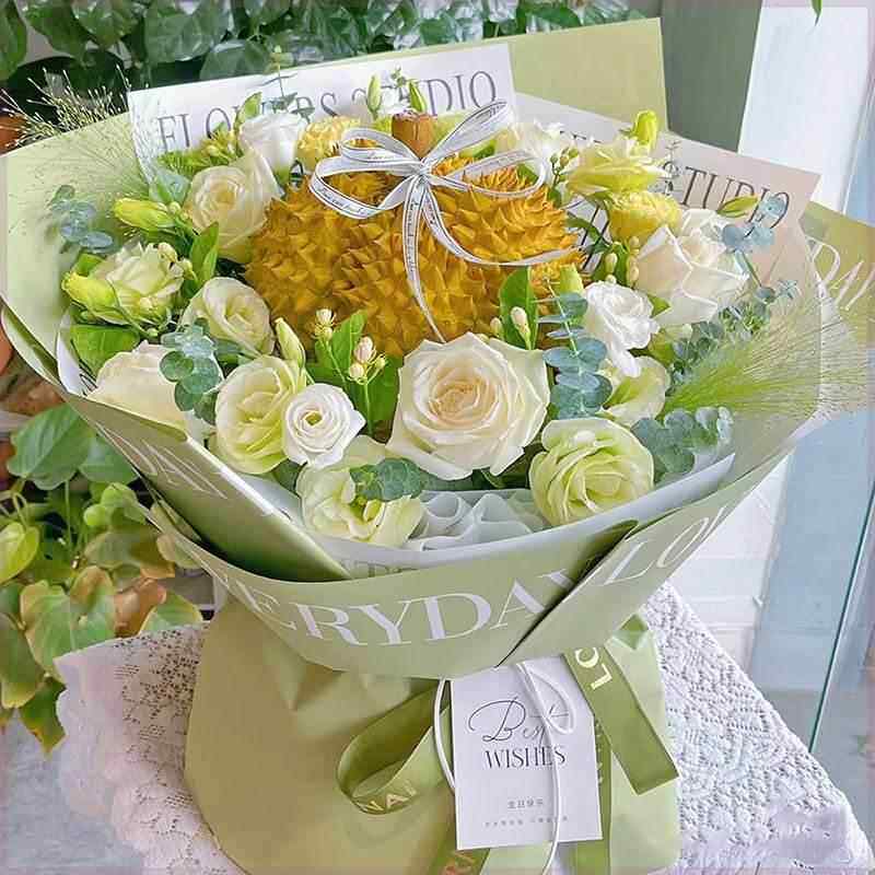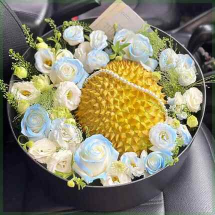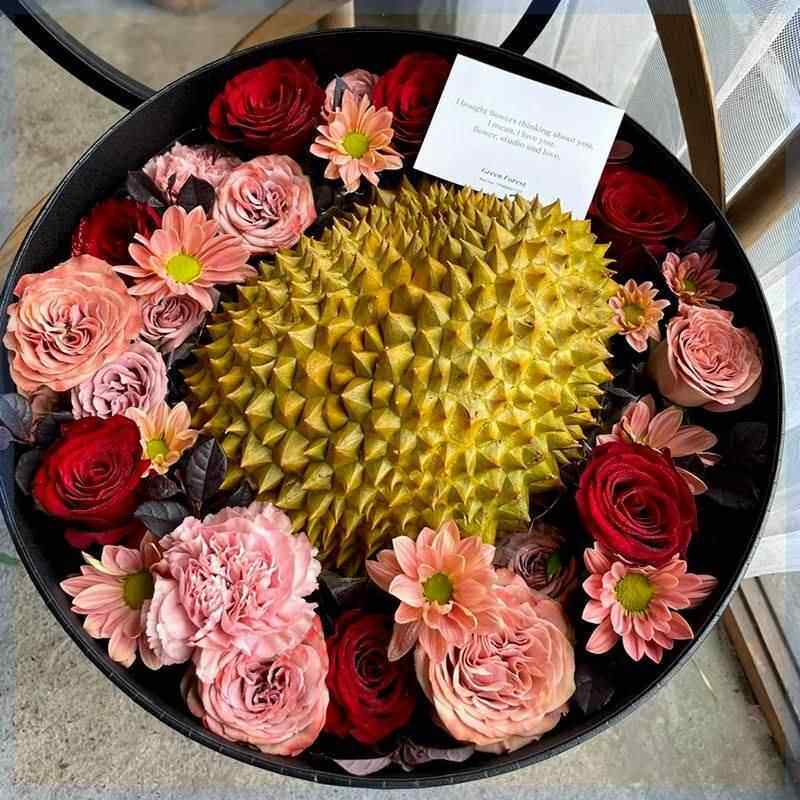 感恩节榴莲花束成品水果礼盒玫瑰鲜花速递同城广州配送老婆圣诞节