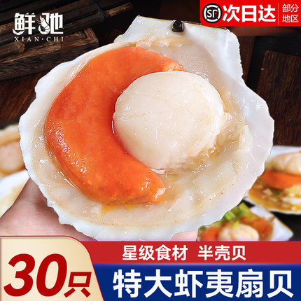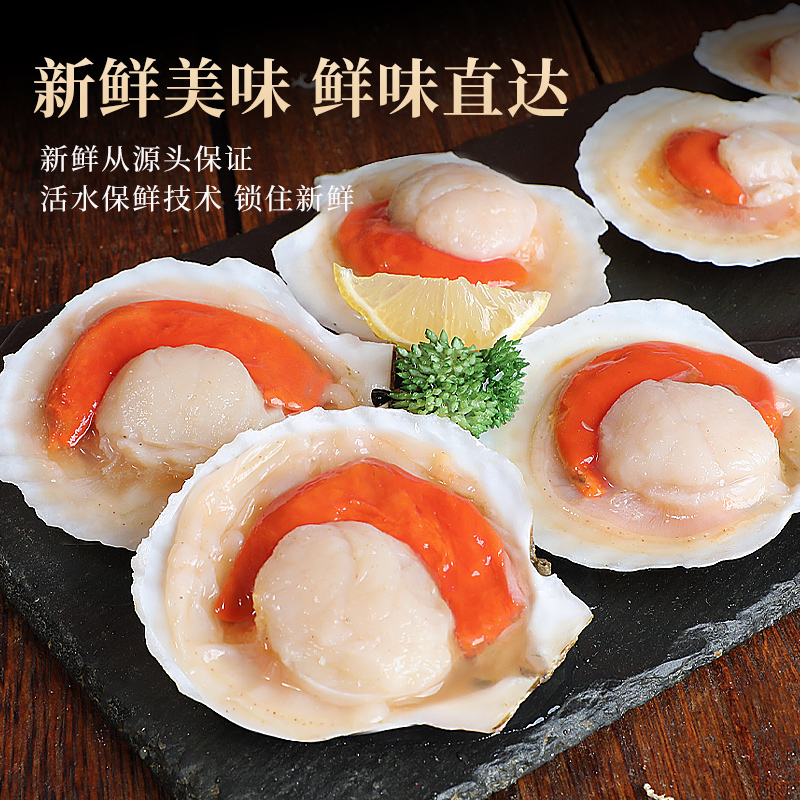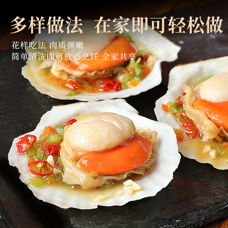 半壳贝超大夏夷贝虾夷元贝鲜活冷冻海鲜带壳粉丝蒜蓉烧烤商用扇贝