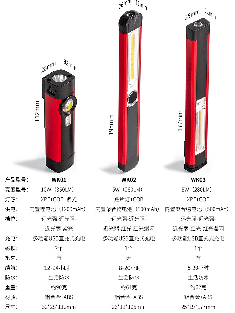 汽修维修灯led手电筒强光充电超亮强磁吸铁工具检修车照明工作灯