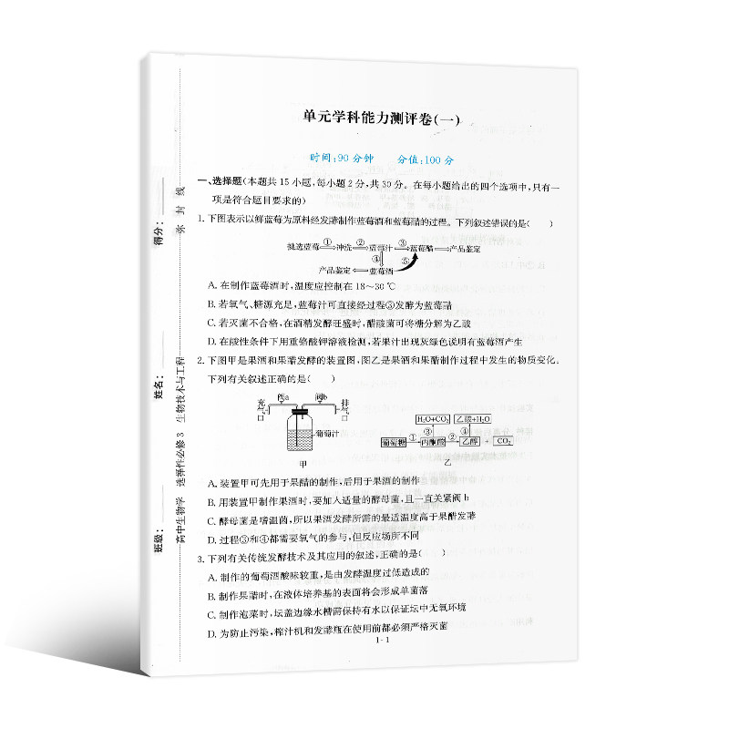 全新正版高中能力培养与测试生物学选择性必修3生物技术与工程高二下学期同步练习册同步解析与测评含课时作业参考答案