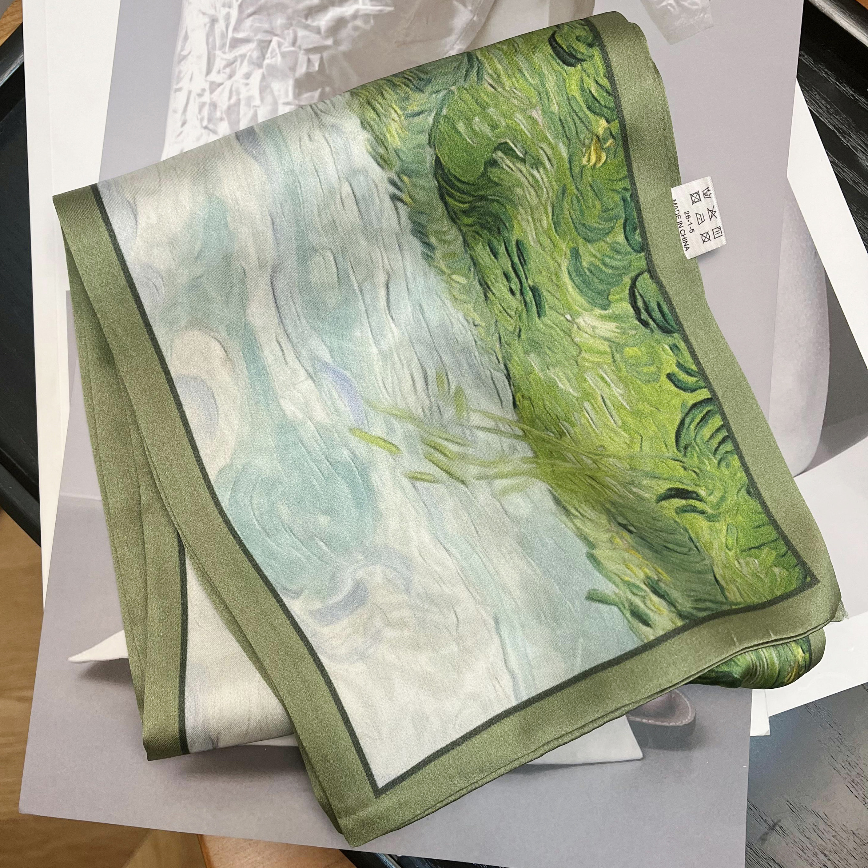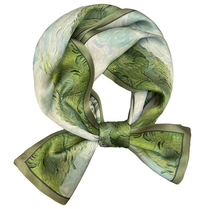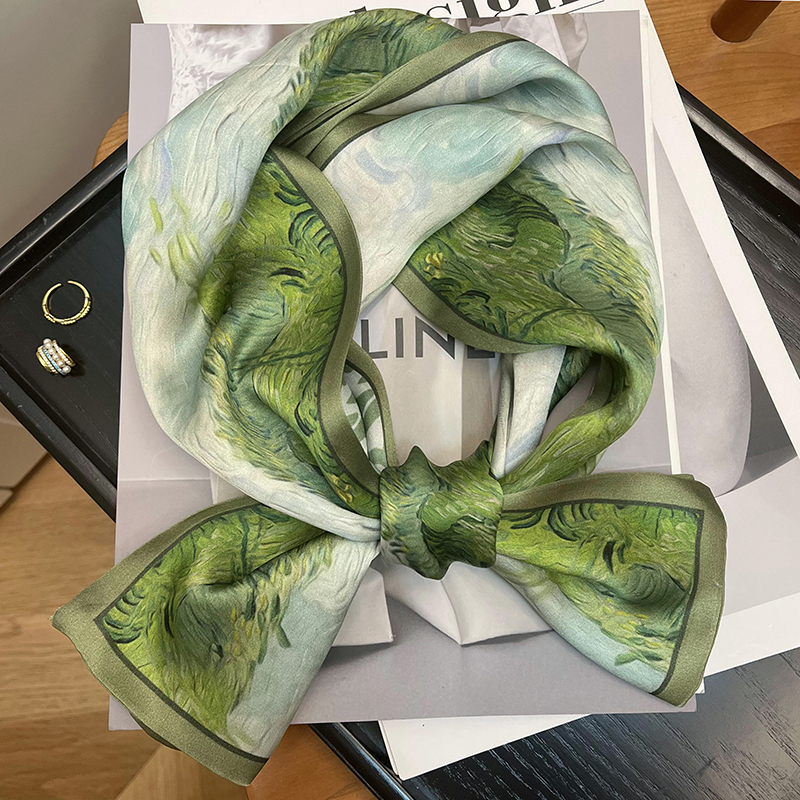 CKDH 100%桑蚕丝真丝丝巾春夏秋搭配衬衫百搭绿色双面长条飘带女