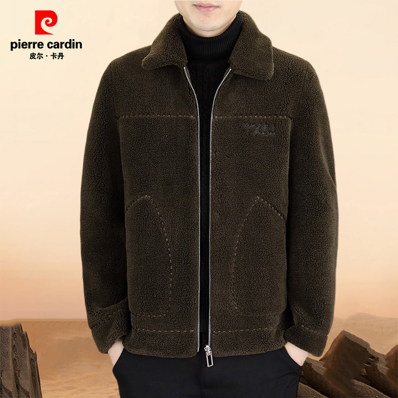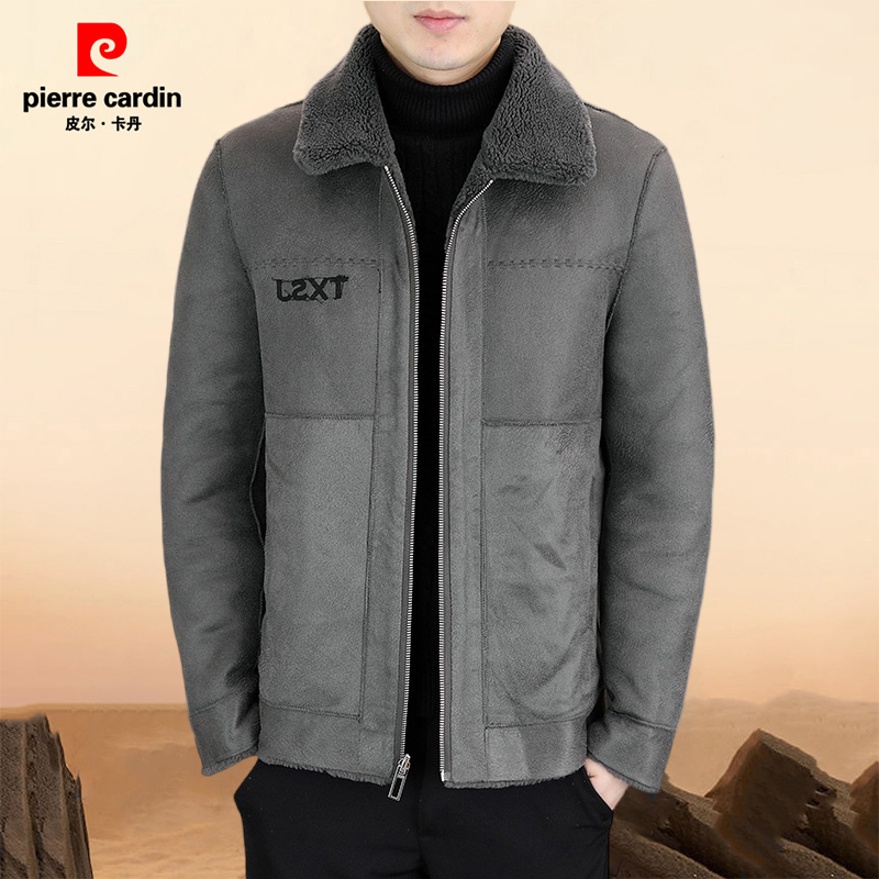 皮尔卡丹羊毛外套秋冬款羊毛呢大衣男士皮毛一体翻领加厚夹克男装