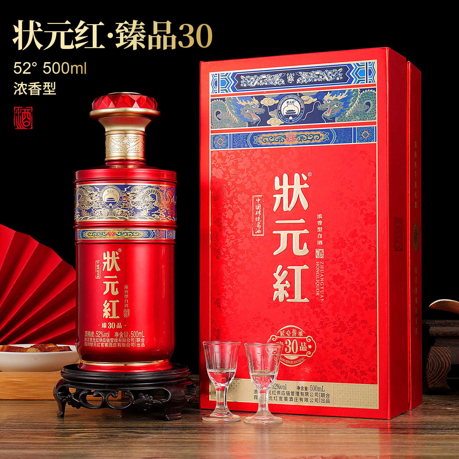 热销状元红臻品30浓香型白酒52度500ml*6瓶整箱纯粮食酒正宗原浆