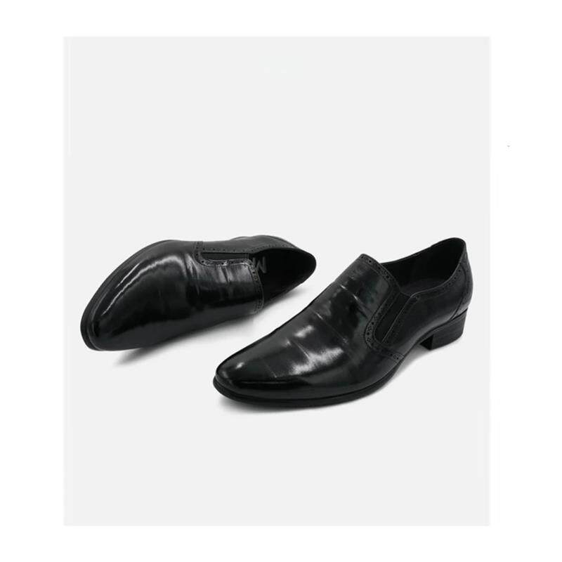 朝益潮鞋简约大气高档小雕花商务男士尖头皮鞋英伦风正装皮鞋