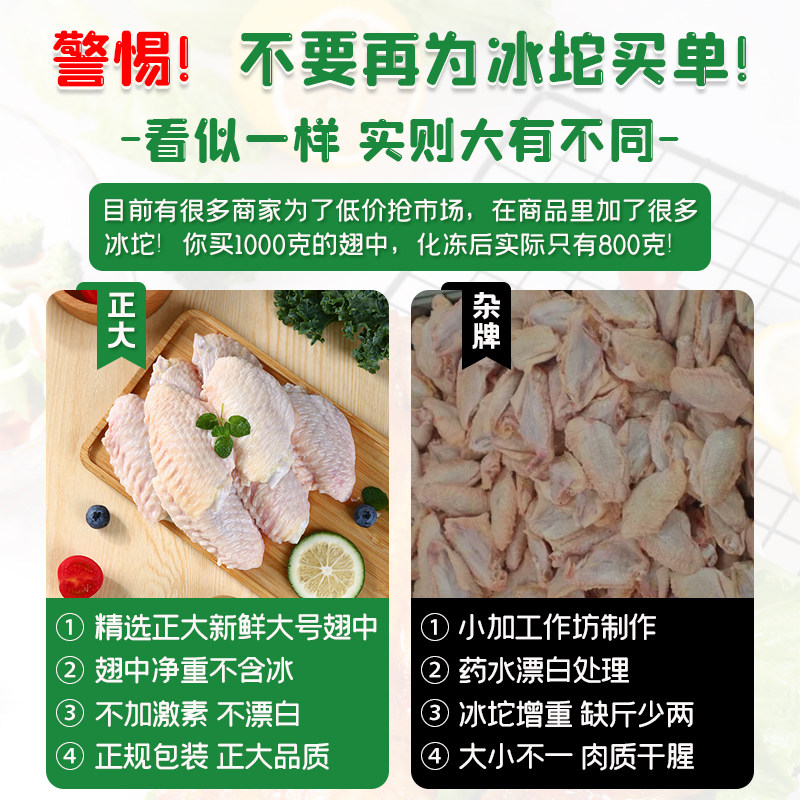 正大食品鸡翅中新鲜冷冻生鲜大号鸡中翅商用无激素奥尔良可乐鸡翅