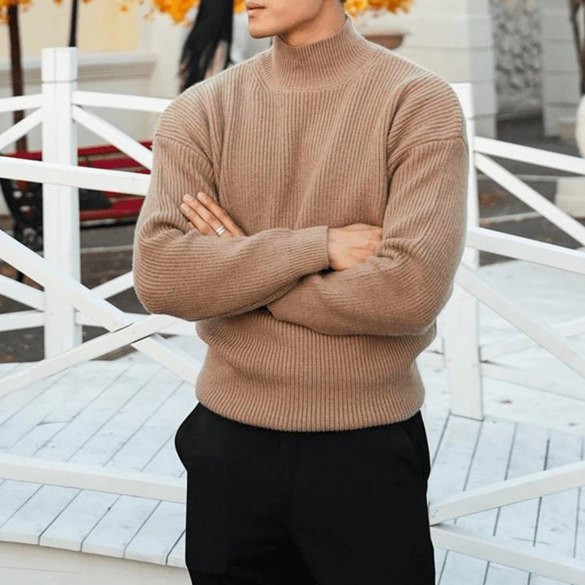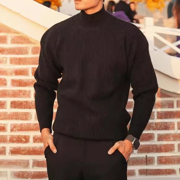 浅灰色半高领毛衣男款春秋季韩系高级感穿搭宽松慵懒风针织打底衫