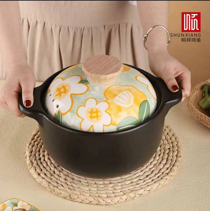 顺祥广府煲欧堇陶瓷耐高温煲砂锅汤煲药锅燃气明火直烧煲汤锅炖锅
