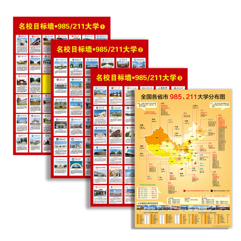 名校目标墙贴带分数985211高考明校全中国名牌大学分布教室墙挂图