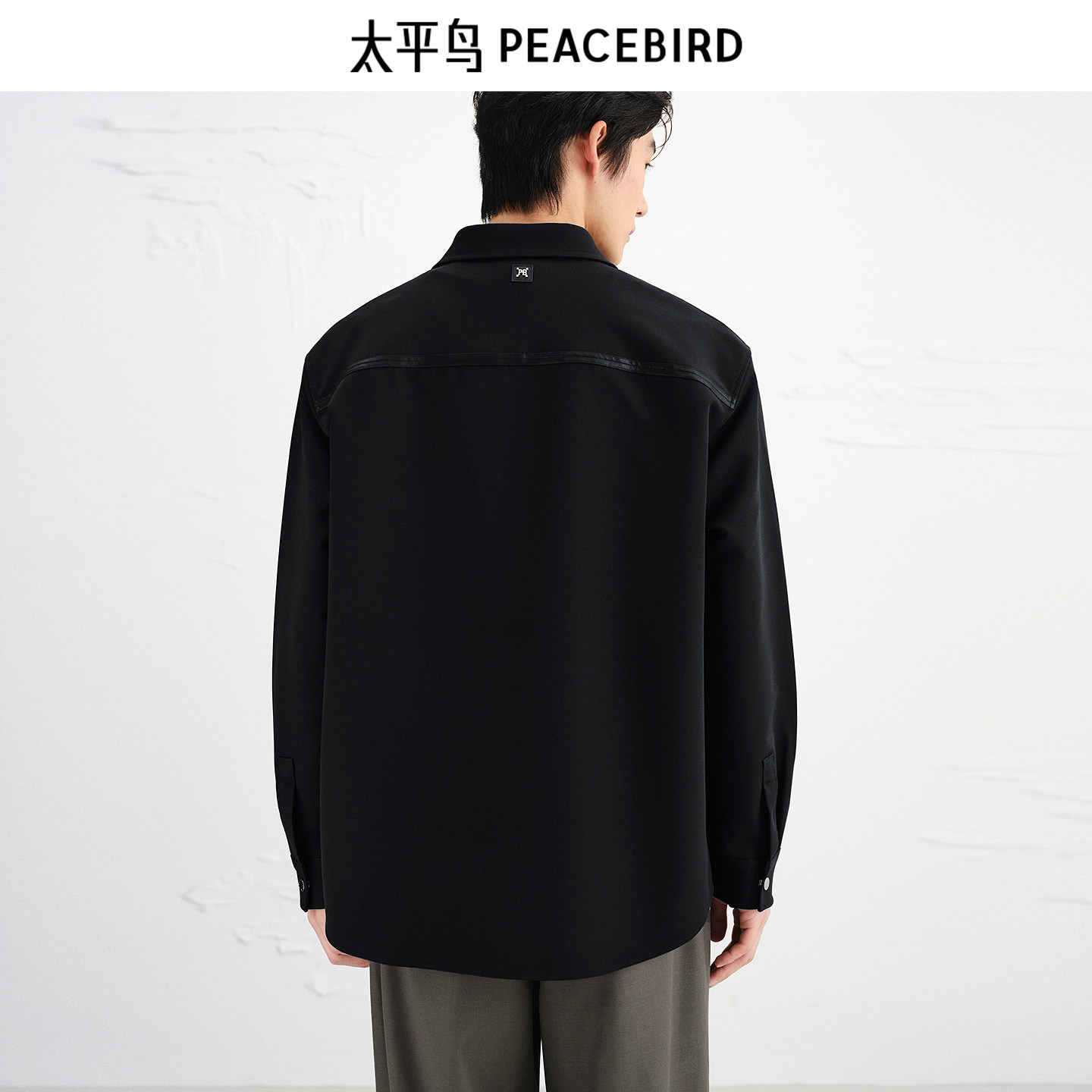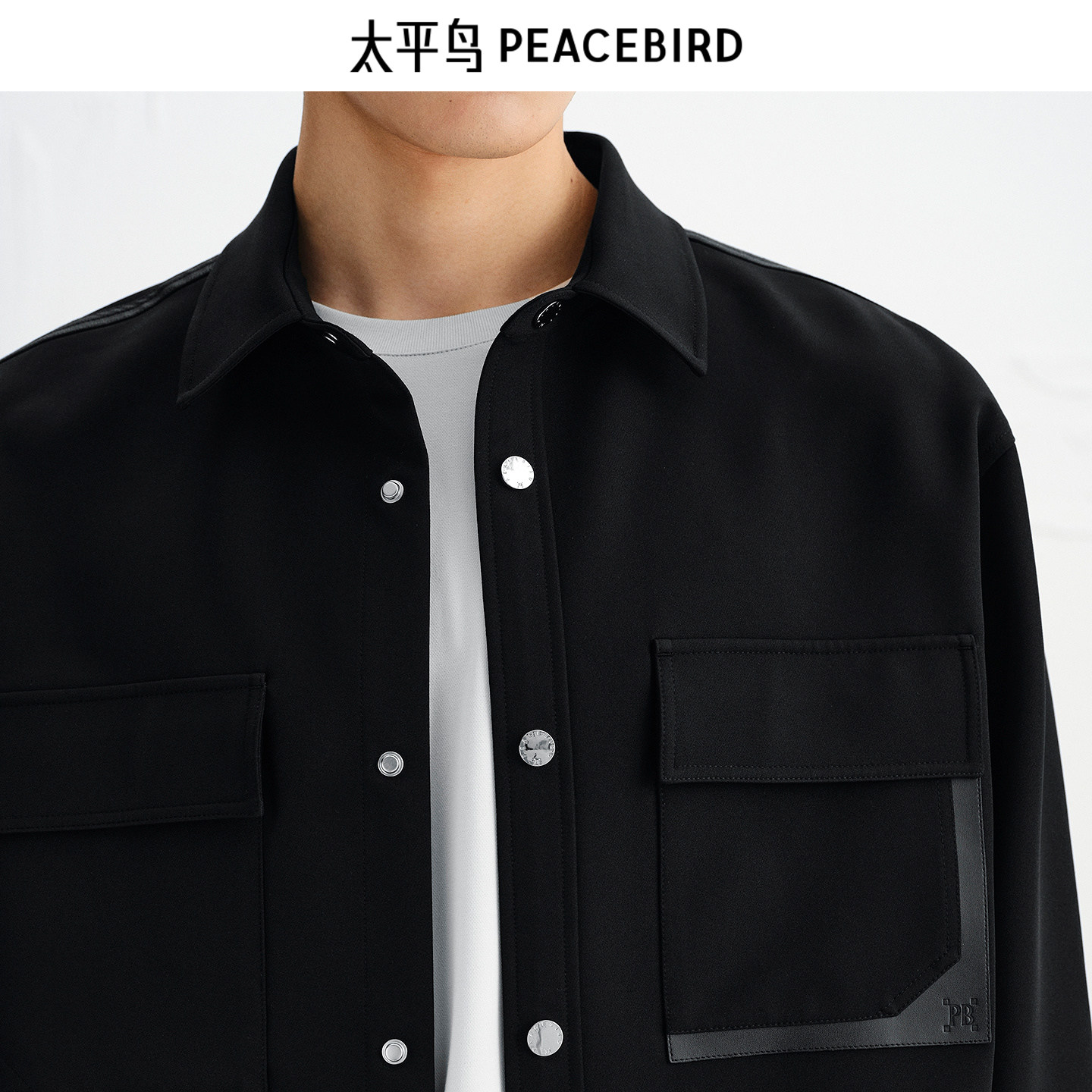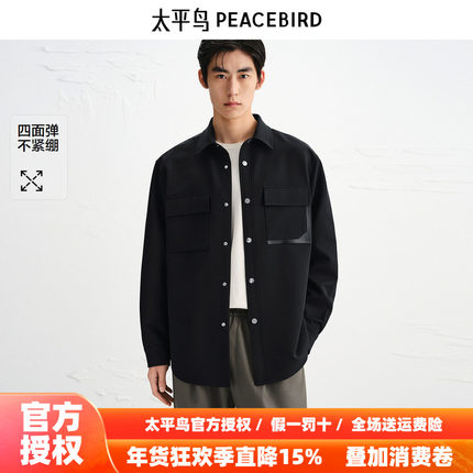 【商场同款】太平鸟男装 黑色工装衬衣长袖四面弹衬衫男B1CHF3325