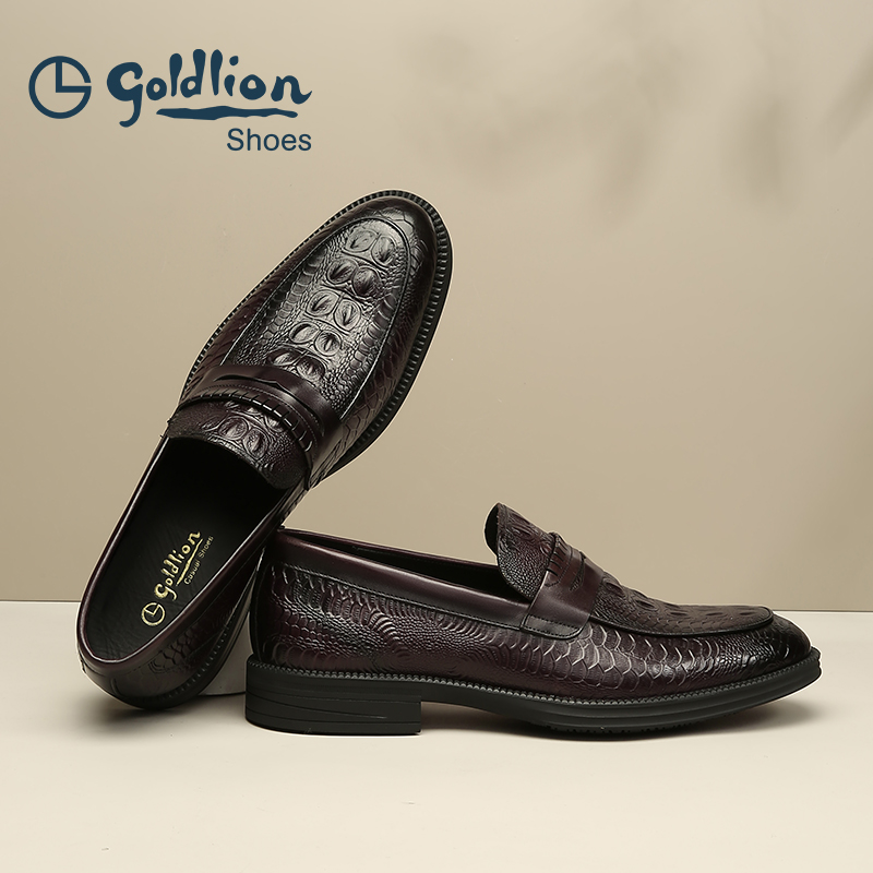 金利来男鞋春季新款商务简约正装皮鞋男耐磨鳄鱼纹办公乐福鞋男士