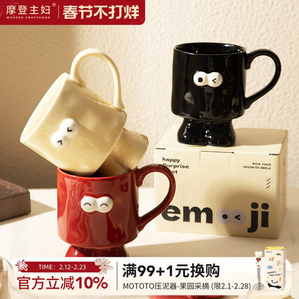 摩登主妇陶瓷马克杯红色杯子女新婚新年礼物本命年情侣水杯咖啡杯