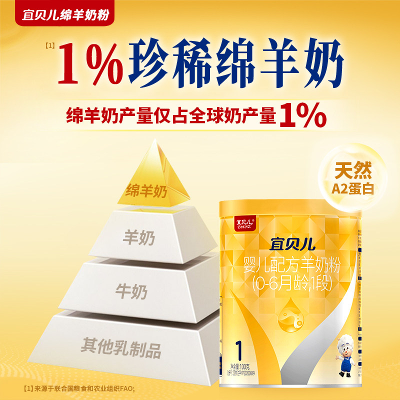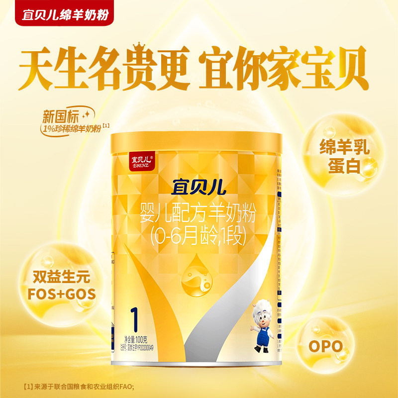 羊羊100宜贝儿纯绵羊奶粉试用装1段0一6个月新生婴儿奶粉一段100g