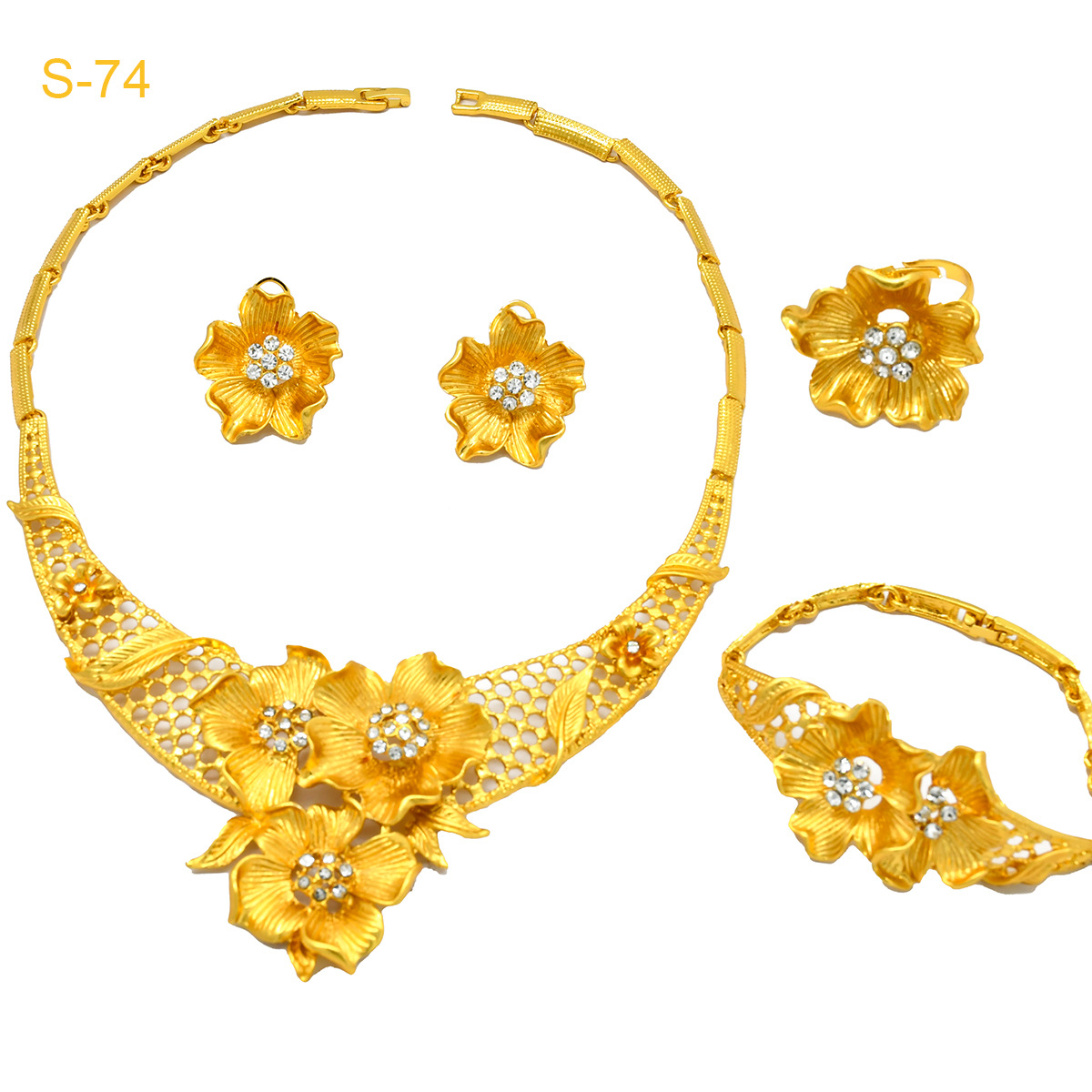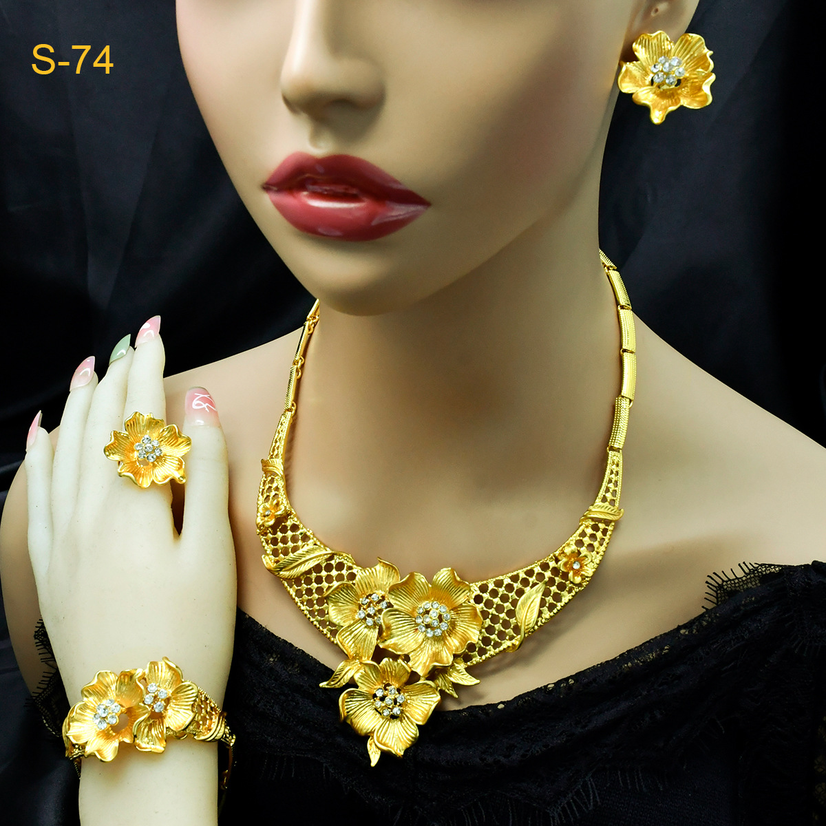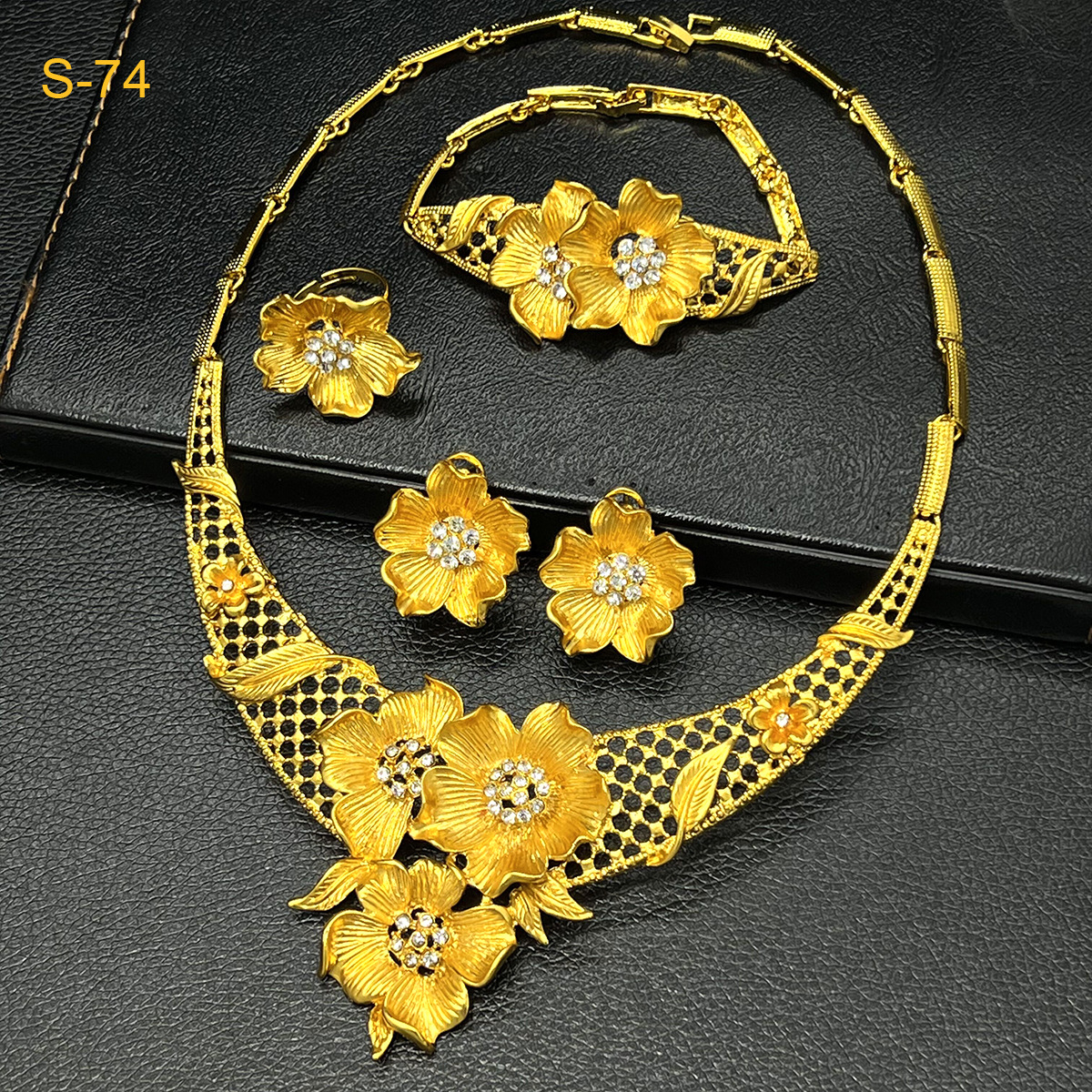 跨境迪拜24K金首饰品尼日利亚新娘项链手链耳环戒指女士四件套装