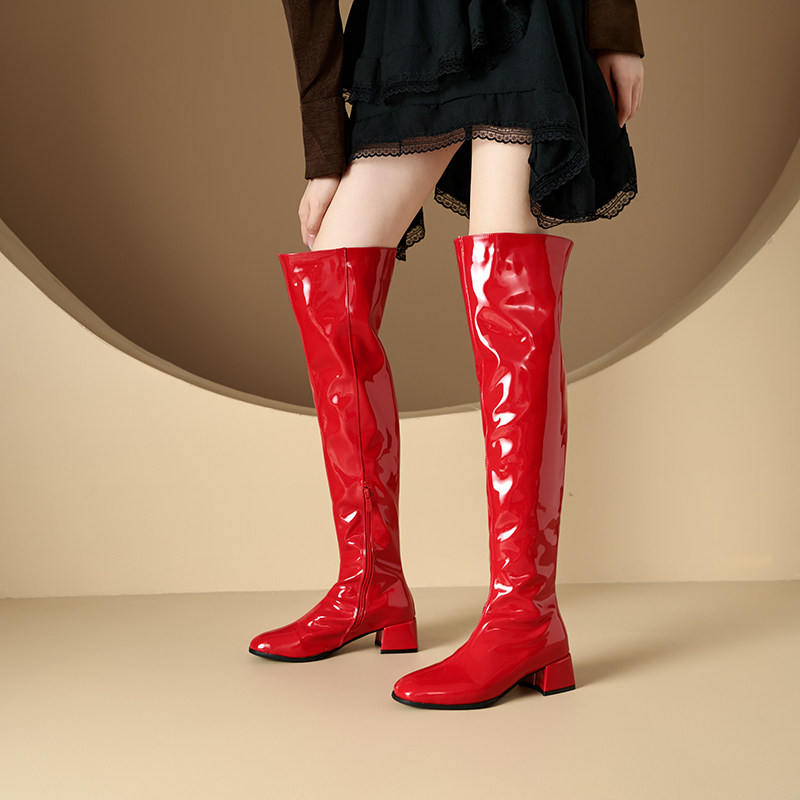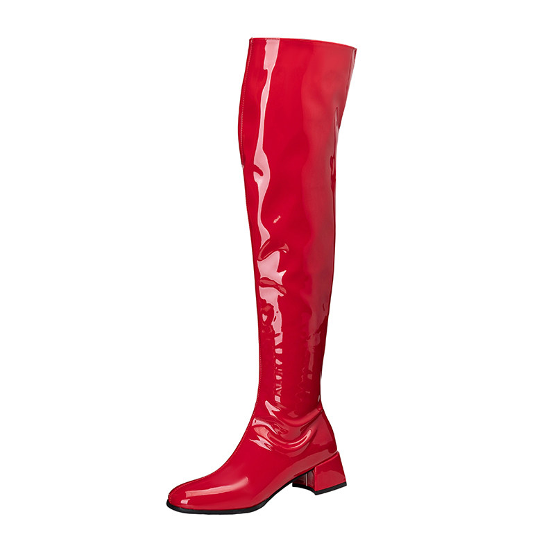 欧美外贸跨境时尚中跟过膝长靴女大码粗跟高筒靴模特走秀靴时装靴