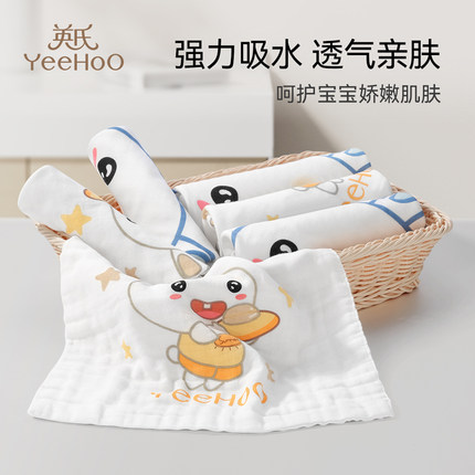 英氏婴儿口水巾新生儿纯棉超软小方巾宝宝专用洗脸巾儿童纱布毛巾