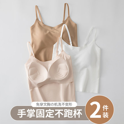 夏天吊带背心抹胸隐形肤带胸垫一体杯固定细肩带美背中长款文胸罩