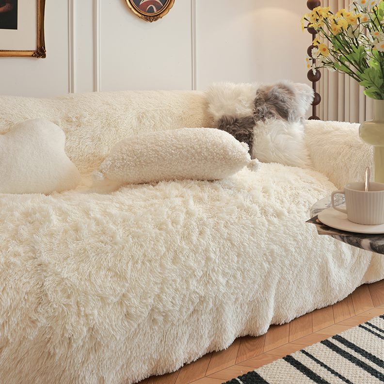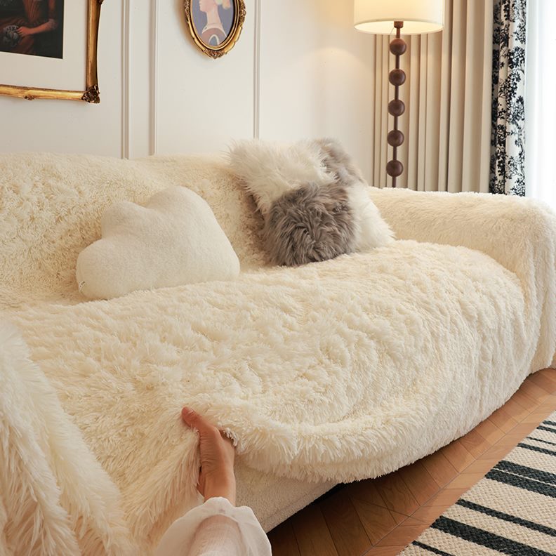 冬季盖布简约毛绒沙发巾新款巾全包奶油直排三人单沙发垫风套罩毯