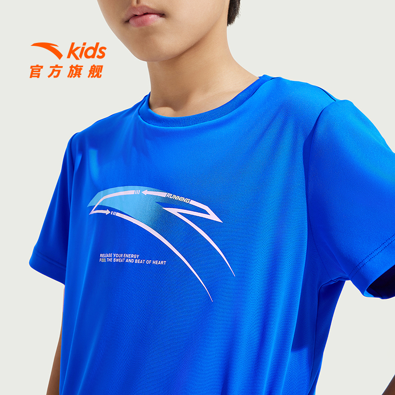 安踏儿童男童针织短袖衫2025夏季新款透气亲肤中大童运动短袖T恤
