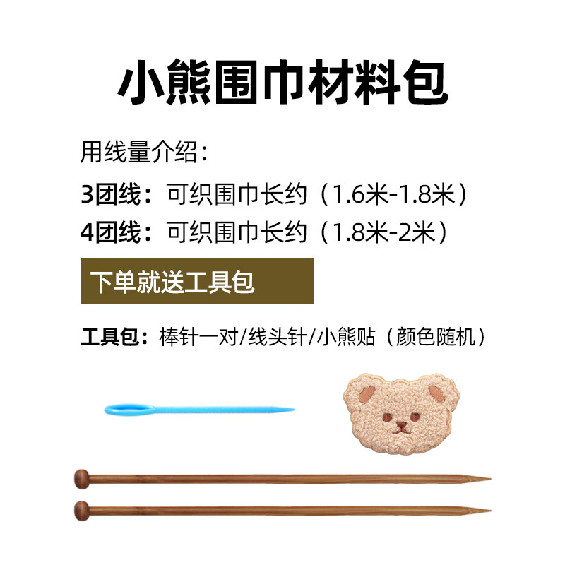 毛线团织围巾的毛线小熊围巾diy材料包手工编织送男友女自织围巾
