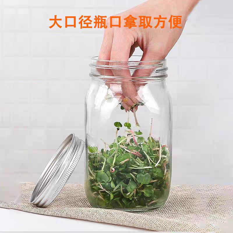 家用生豆芽梅森瓶发芽罐水培芽菜304不锈钢盖加厚玻璃育苗瓶套装