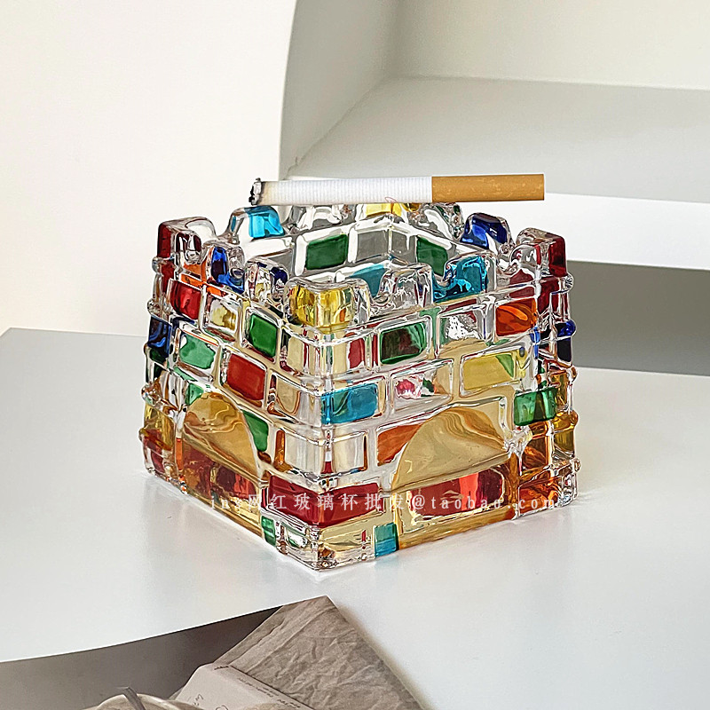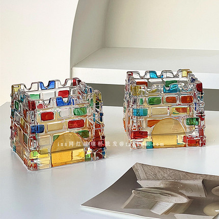 ins彩绘城堡烟灰缸高颜值个性时尚客厅摆件防飞灰创意装饰雪茄缸