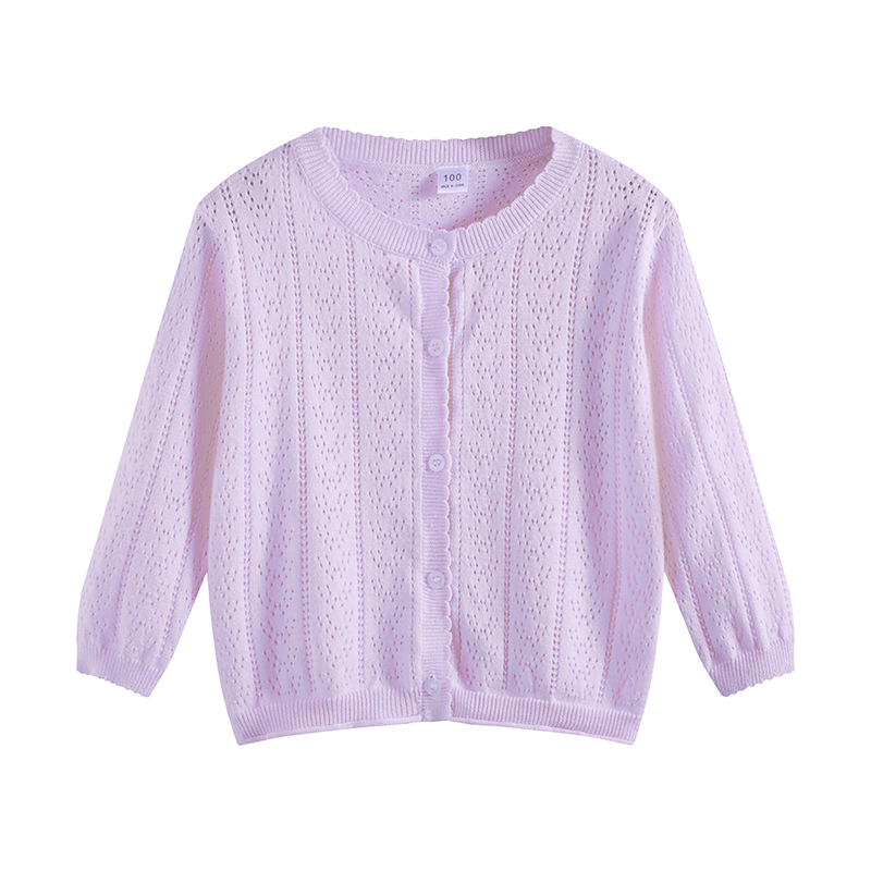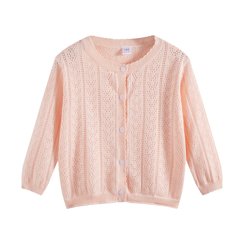 中大女童镂空空调开衫春夏装纯棉薄款柔软针织衫宝宝洋气毛衣披肩