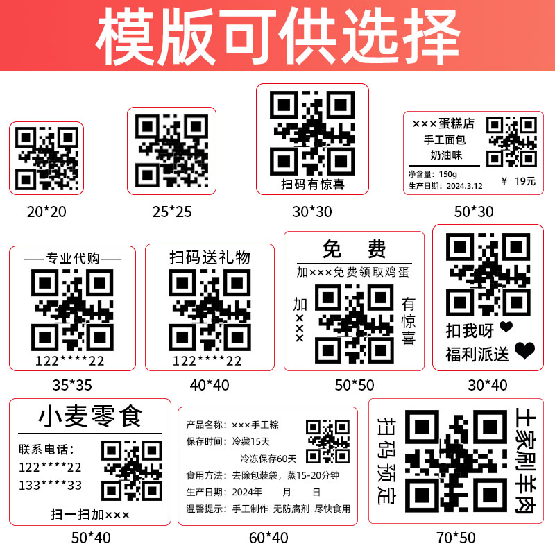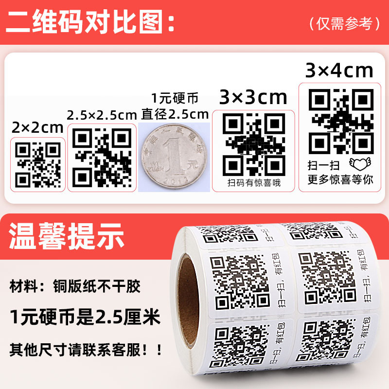 微信二维码贴纸定制二微码不干胶小贴纸代打印微商广告价格条码标签数字编码可粘帖自粘大号条形码定做彩色