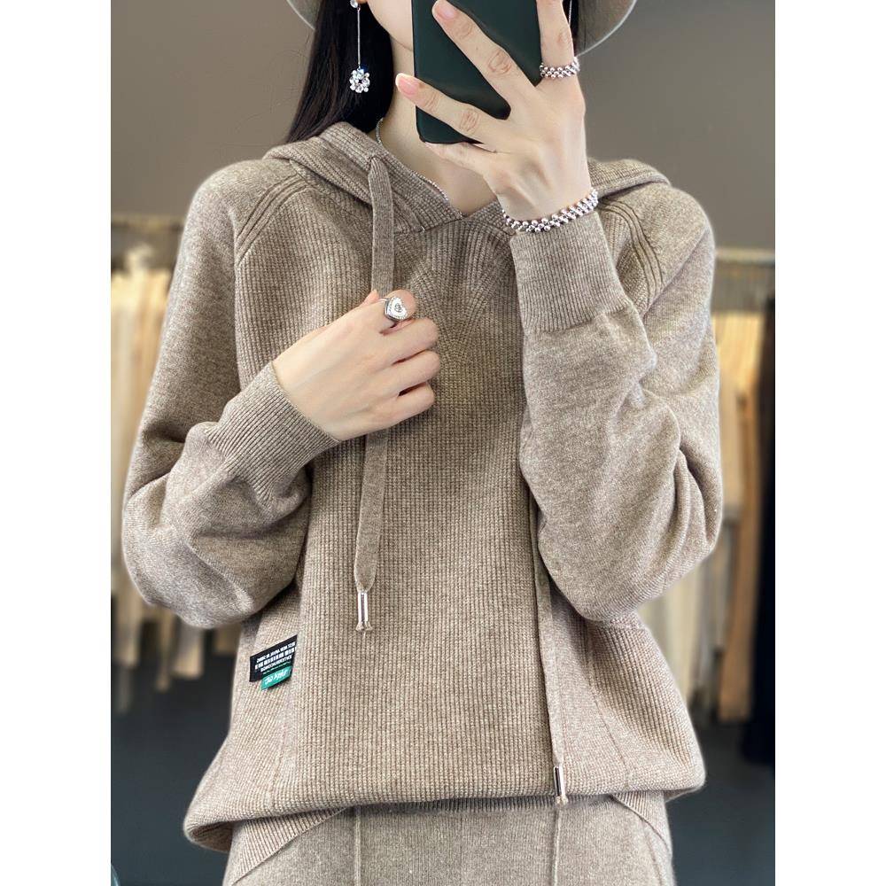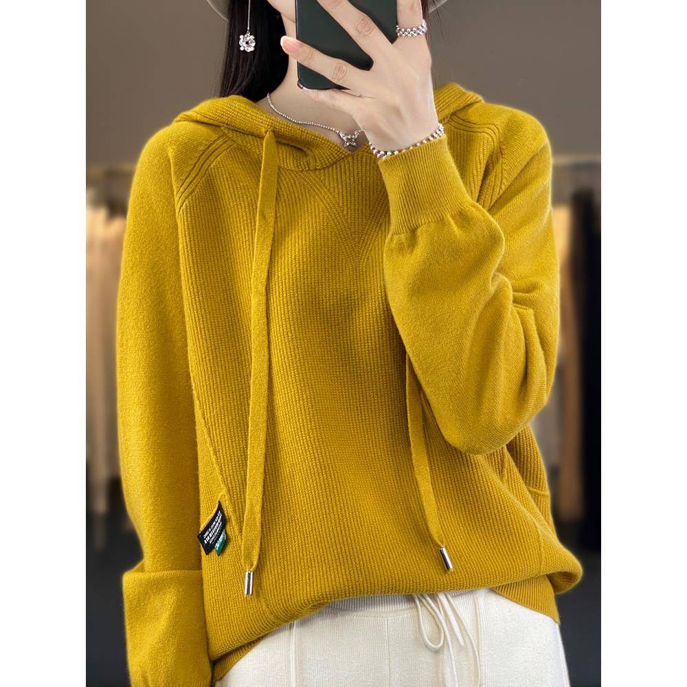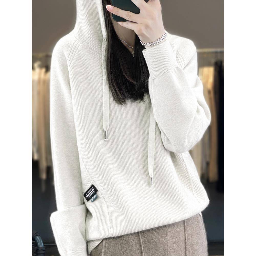 秋冬女毛衣打底针织连帽带帽套头外套卫衣韩版宽松洋气衫时1011k