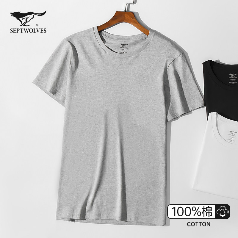 七匹狼男士纯棉简约纯色短袖t恤