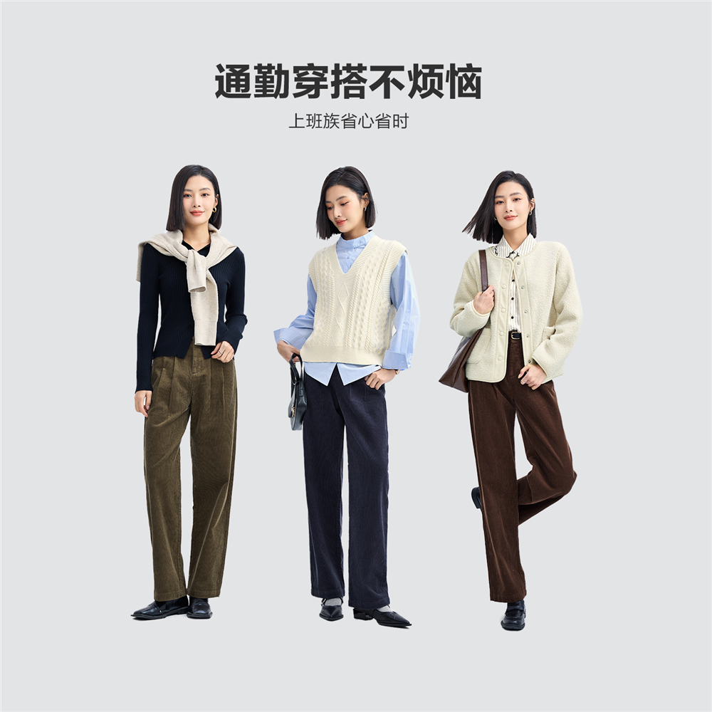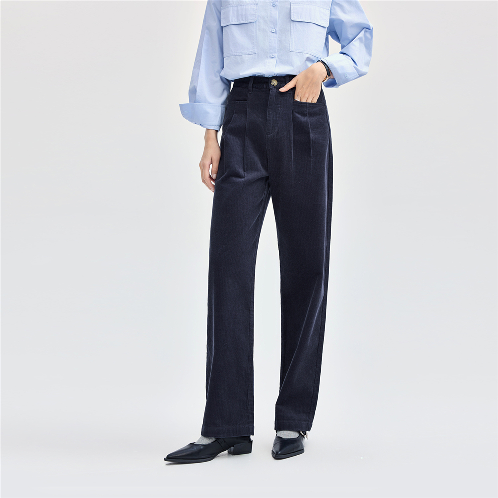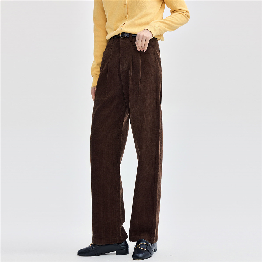 佐丹奴条绒裤子女纯棉灯芯绒复古风一字口袋直筒休闲裤女05414674