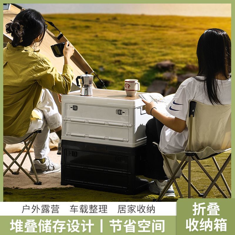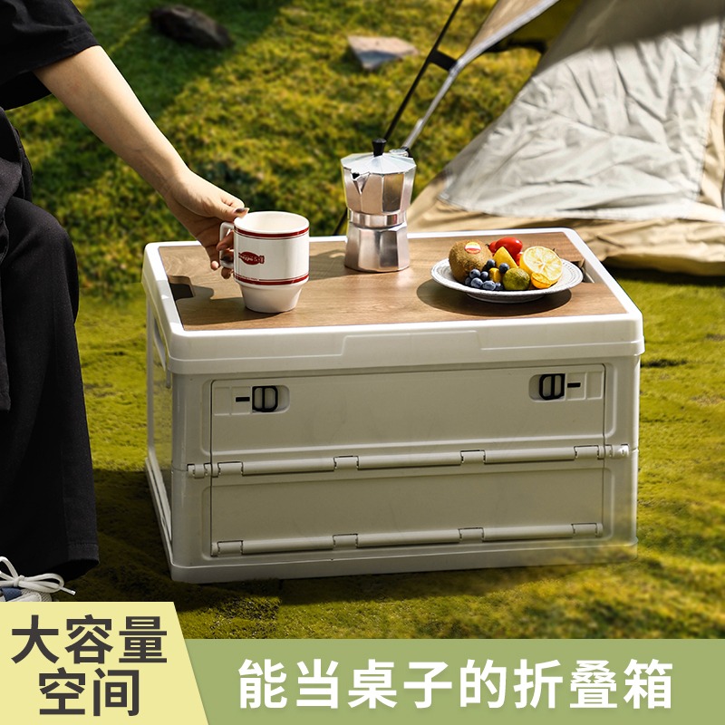 户外露营折叠车载收纳箱木盖侧开置物整理箱尾箱汽车后备箱储物箱