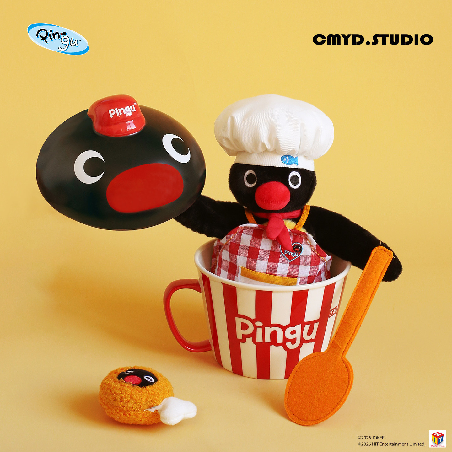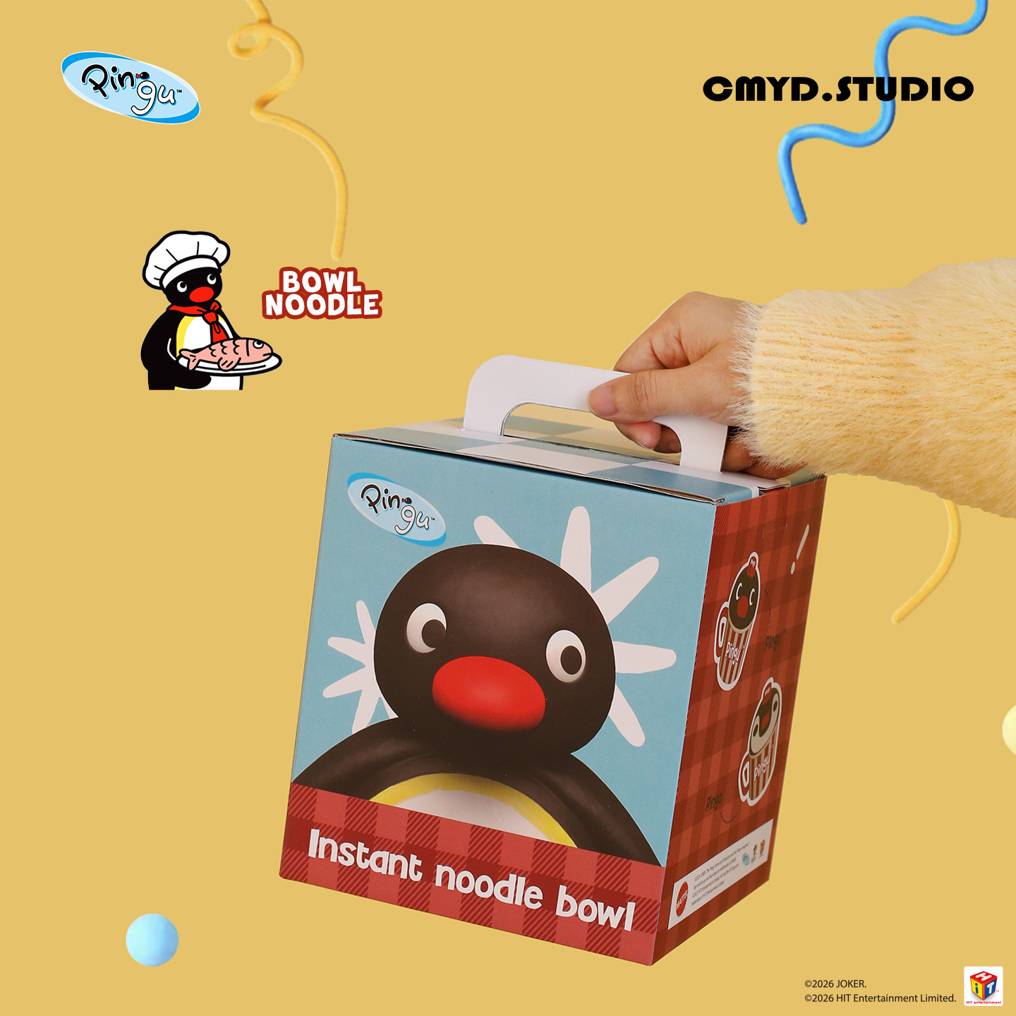 CMYD·Pingu可爱爆米花带盖泡面碗可爱企鹅陶瓷家用餐具新年礼物