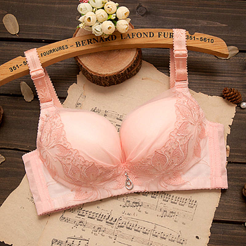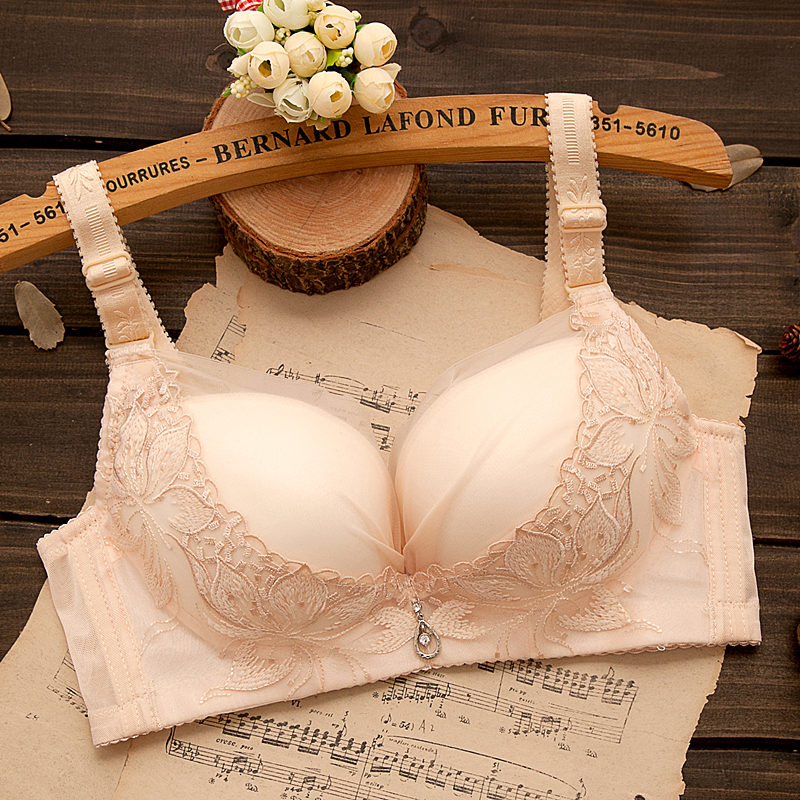 白肤色内衣女无钢圈小胸聚拢收副乳薄款文胸性感蕾丝上托夏季春夏
